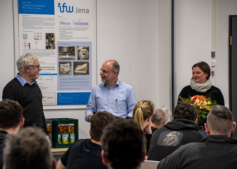 Das gesamte Kollegium des ifw Jena bedankt sich bei Michael Neuhäuser für die sehr konstruktive Zusammenarbeit, dafür, dass er immer gern seine Erfahrungen weitergegeben hat und dafür, dass er mit seinem Wissen immer wieder zur Bewältigung von Herausforderungen zur Stelle war.