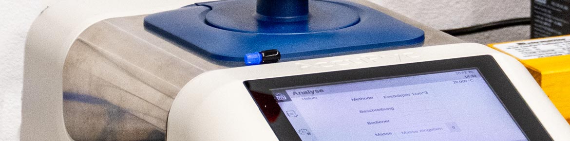 Gaspyknometer zur Messung der wahren Dichte und des wahren Volumens von Feststoffen, Pulvern und Schlämmen