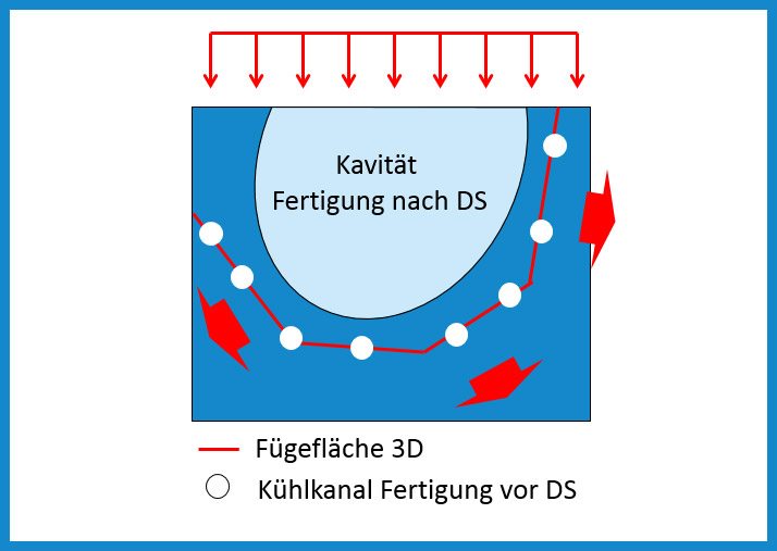Ähnlich der additiven Fertigung können mittels des Diffusionsschweißens monolithische Bauteile oder Halbzeuge hergestellt werden, die aus mehreren Lagen oder aus Formteilhälften zusammengesetzt sind. So können im Bauteilinneren komplexe Hohlstrukturen erzeugt werden, die sich durch etablierte spanende Fertigungstechnologien nicht herstellen lassen.