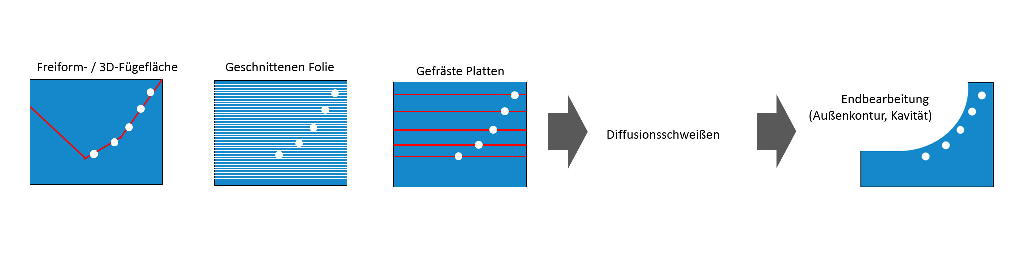 In dem geplanten Vorhaben soll eine Prozesskette konzipiert werden, die es ermöglicht, für größere Spitzgießwerkzeuge die Vorteile einer konturnahen Temperierung nutzbar zu machen. Um diese Zielstellung zu erreichen, sollen – ausgehend von der Fügetechnik (Diffusionsschweißen) als dem entscheidenden Produktionsschritt – Konstruktionskonzepte und fertigungstechnische Systematiken entwickelt werden, um für die geometrisch großen Werkzeugeinsätze möglichst optimale physikalische Abkühlbedingungen zu erreichen. Dabei bildet die Einbeziehung von Simulationsverfahren (FEM, CFD) in die Fertigungskette, beginnend bei der thermischen Gestaltung und Auslegung der Temperierkanäle bis hin zur Simulation wesentlicher Aspekte des Diffusionsschweißprozesses, einen Schwerpunkt. Den Kern des geplanten Forschungsvorhabens stellt die Entwicklung und Validierung der Prozesskette „diffusionsgeschweißter Werkzeugeinsatz“ dar. Auf dessen Basis werden Auslegungsrichtlinien abgeleitet, um dadurch den erfolgreichen Einsatz im Inland und die Sicherung eines technologischen Vorsprungs insbesondere für KMU zu ermöglichen.