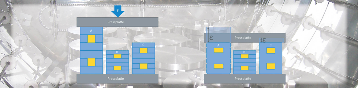 … Druckkammer mit einem Füllmedium. In diesem Fall erfolgt eine isostatische Druckübertragung auf die Bauteile durch einen festen Ausgleichkörper, wodurch Höhentoleranzen weitestgehend vernachlässigt werden können.