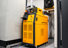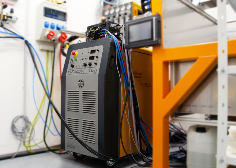 Schweißstromquelle für das Plasma-Pulverauftragschweißen mit einem Pulverförderer. Die Besonderheit der Anlage ist, dass sie mit einem Pilotstrom bis 100 A arbeitet. Dadurch wird die Bearbeitung von elektrisch nichtleitenden Materialien ermöglicht.